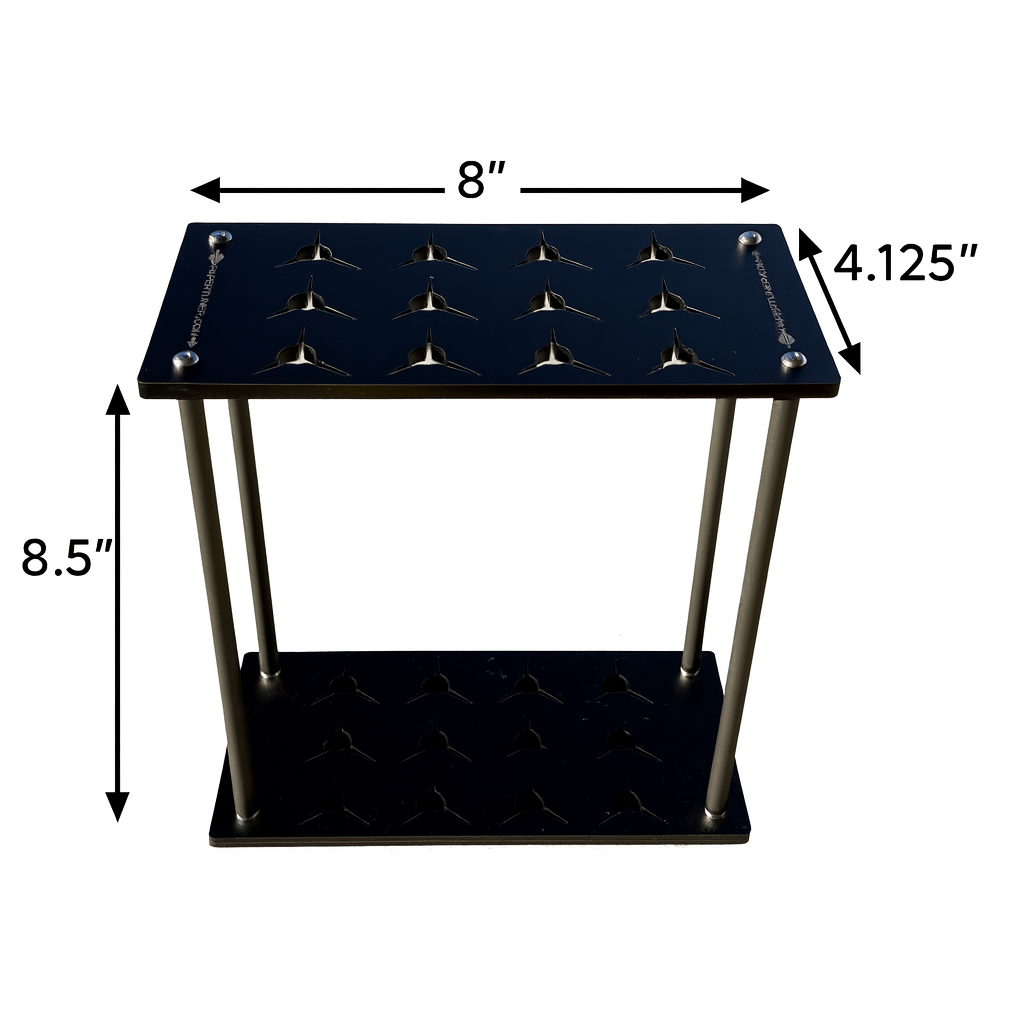Designed for convenience during arrow assembly. Keeps arrows upright and stable while gluing inserts and fletchings. Also great for displaying your arrows.